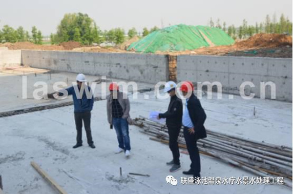 目前,江蘇省南京市的涵碧樓正在如火如荼建設中,聯盛人在40度高溫天氣下緊鑼密鼓地施工。項目包括2個SPA泳池,20余個水景池,及桑拿等。由于施工地20余處的水景處分布比較分散,施工極為不方便;水景又是處于總包單位剛剛交付的工程界面,余下工作十分繁重;并且項目在2017年下半年就需要投入使用,工期非常緊張。