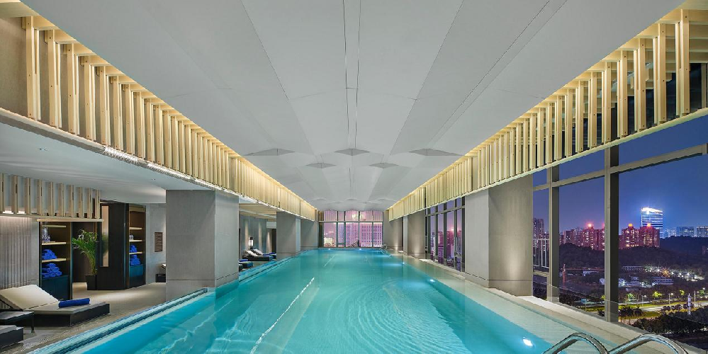 西安君悅酒店配套了室內恒溫泳池、按摩池、蒸汽房、桑拿房、鹽療房、VIP體驗式淋浴、加熱躺椅、按摩泡缸等,均由聯盛水環境工程有限公司精心打造。