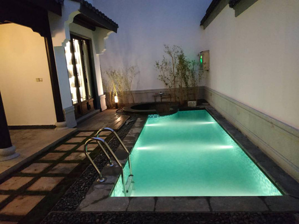 春沐源生態(tài)小鎮(zhèn)溫泉酒店和餐廳項(xiàng)目溫泉設(shè)備安裝工程由“水環(huán)境領(lǐng)航者”——聯(lián)盛水環(huán)境工程有限公司打造,包含4個游泳池、13個溫泉泡池以及3個民宿二層溫泉浴。游泳池采用地埋式一體化過濾設(shè)備,配置了石英砂循環(huán)過濾系統(tǒng)和消毒系統(tǒng),確保水質(zhì)滿足最新的《游泳池水質(zhì)標(biāo)準(zhǔn)》CJ/T-2016要求。