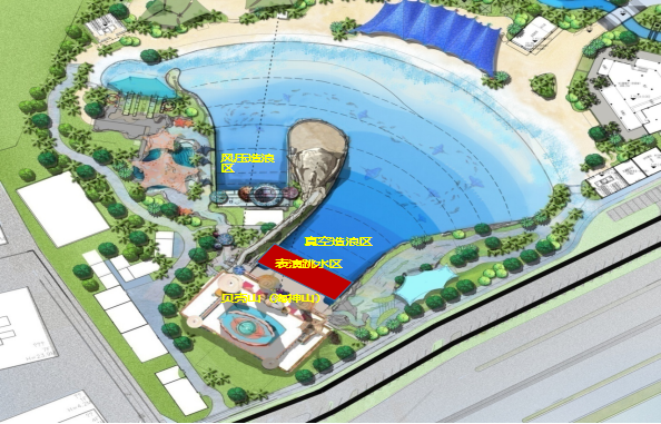 以水為筆,以光為彩,水幕屏障長52米、高30多米,視野覆蓋整個造浪池區。以水光矩陣、50臺光束水柱、100米霧森特效、60套動感二維水柱、14套氣爆、6套互動式加特林水槍、激光等表演形式,營造出一幕幕環繞式、互動式、立體式的裸眼激光沉浸式視覺盛宴。