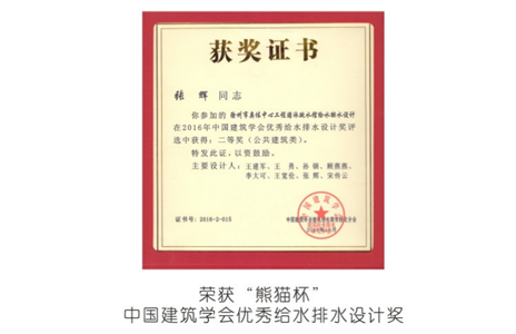 榮獲“熊貓杯” 中國建筑學會優秀給水排水設計獎