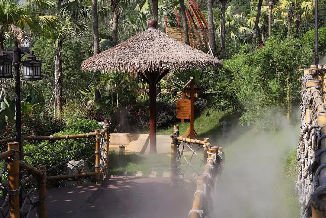 泉林水世界溫泉區由20余個不同的泡池組成,出井溫度72℃,流出溫度52℃,日出水量可達1776立方米。溫泉水含豐富的微量元素與礦物質,讓人倍感輕松,能消乏解困,對關節炎、肩周炎、腰肌勞損均有顯著的治療作用,對健身美容亦有很好的效果。溫泉區精心設置無邊湯池、慢湯泡池、木湯泡池、鳥巢泡池、禪茶泡池以及華南珍稀的六感主題泡池和英石泡池七大主題區。