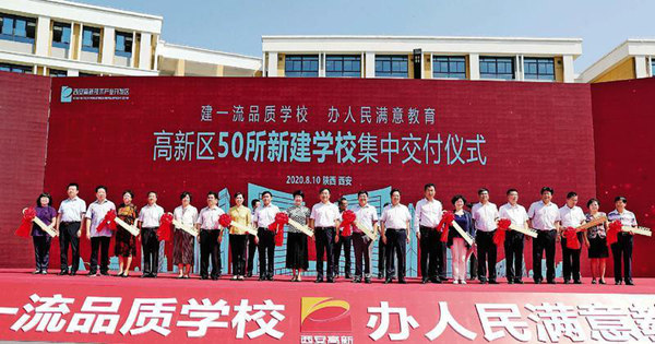 8月10日,“建一流品質學校,辦人民滿意教育”高新區50所新建學校集中交付儀式在新落成的西安高新一中實驗中學舉行。