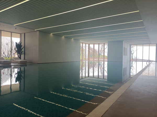 太陽山老鷹地旅游度假村項目汐岸B04地塊的游泳池工程項目現已進入施工后期階段,其中包括室內恒溫泳池,體積400m3/H(成人池+兒童池),循環周期4H,水池設定溫度28攝氏度;室外泳池240m3/H,循環周期4H,為常溫水池。游泳池設備采用顆粒壓力式過濾器,分流量全程式臭氧+長效氯消毒設備,泳池采用專用型空氣源熱泵加熱,室內恒溫恒濕系統。