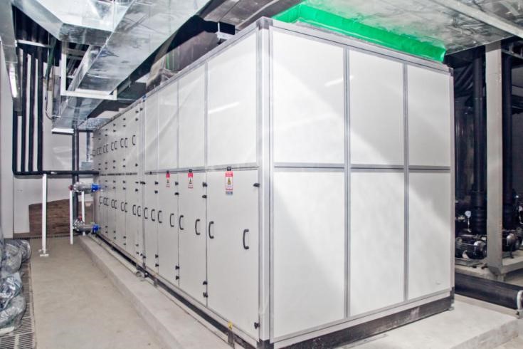 泳池位于體育館內,長50m,寬21m,水深1.5m,配置水處理系統、除濕系統、空氣源熱泵供熱系統。池水處理采用逆流循環方式,消毒方式是臭氧消毒配合長效氯消毒。室內空氣采用除濕、熱回收、池廳空氣溫度制冷、制熱處理。