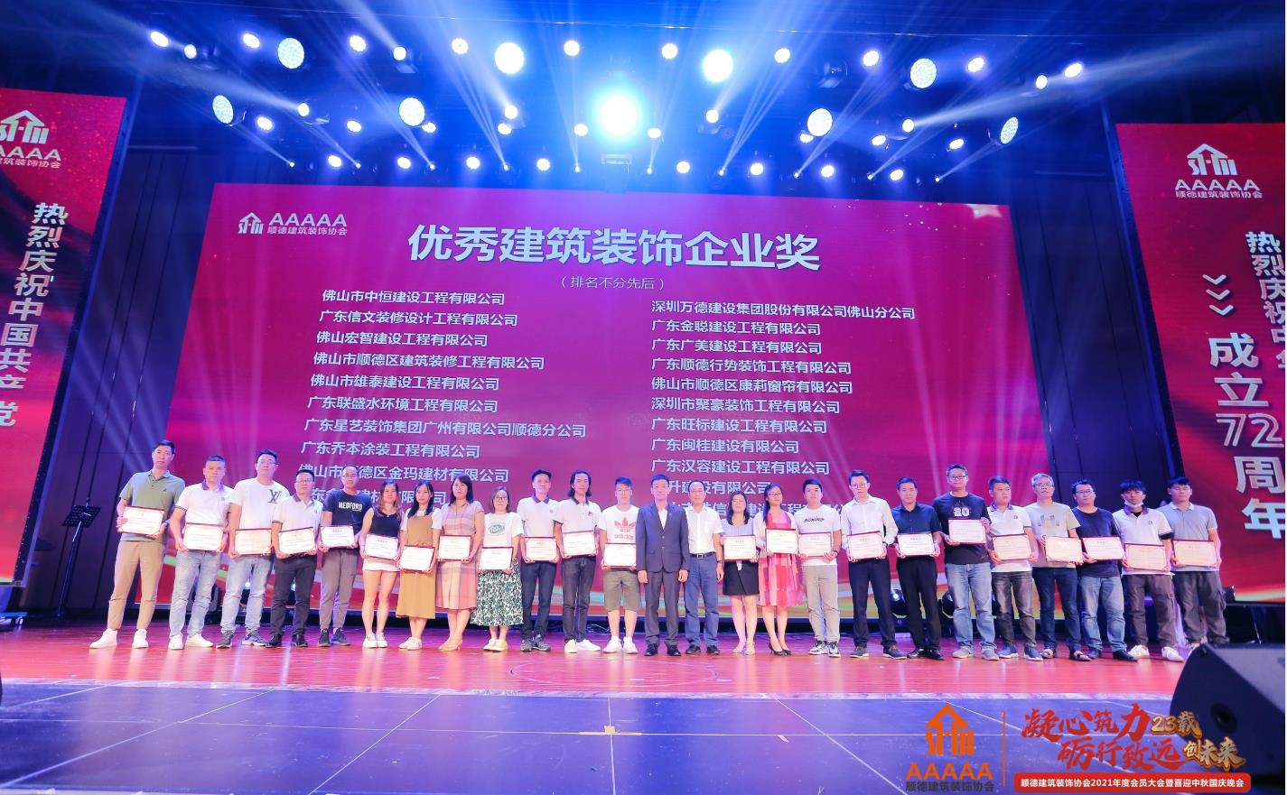 2021年9月17日,在中秋佳節(jié)和祖國72周年華誕即將到來之際,順德建筑裝飾協(xié)會(huì)隆重舉辦“凝心筑力,礪行致遠(yuǎn)”2021年度會(huì)員大會(huì)暨喜迎中秋國慶晚會(huì)。順德區(qū)委統(tǒng)戰(zhàn)部、區(qū)人大、區(qū)政協(xié)、區(qū)住建和水利局 、區(qū)工商聯(lián)領(lǐng)導(dǎo)蒞臨現(xiàn)場指導(dǎo)。