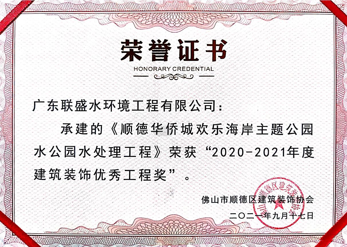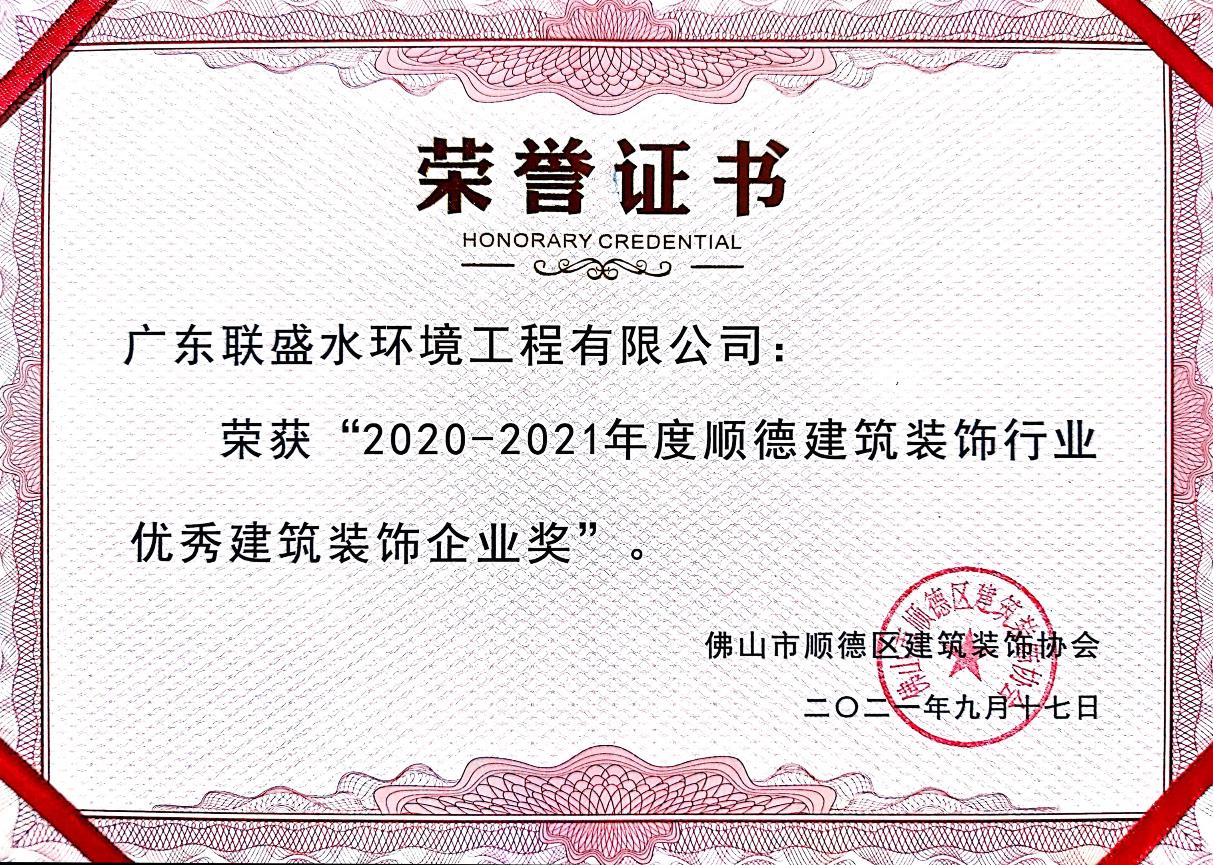 因?yàn)橛辛隧樀陆ㄖb飾協(xié)會(huì)及同行朋友對聯(lián)盛公司的肯定與認(rèn)可,聯(lián)盛公司才有幸獲得多項(xiàng)榮譽(yù)。作為“水環(huán)境領(lǐng)航者”,聯(lián)盛重任在肩,必將再接再勵(lì),打造出更多優(yōu)質(zhì)工程,為建設(shè)美好新順德而全力以赴,為中國建筑行業(yè)注入更多活力!