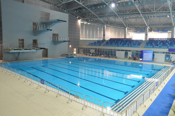 江門(mén)體育中心項(xiàng)目總建筑面積約21.3萬(wàn)平方米,用地面積約40萬(wàn)平方米,總投資約30億元,是多功能綜合性活動(dòng)中心。其中,游泳館為約2000座甲級(jí)中型游泳館,總建筑面積46775㎡,主要功能為比賽池、跳水池、訓(xùn)練池、兒童池。