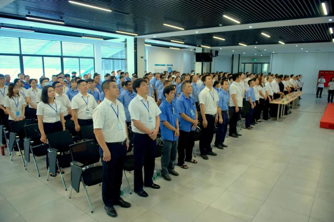 一場莊嚴的升旗儀式拉開了會場年中大會的帷幕,鏗鏘激昂的《義勇軍進行曲》響起,聯盛人莊嚴肅立,面向國旗行注目禮。