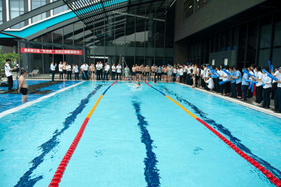 在場外,是一年一度的“聯盛杯”游泳決賽。“浪里白條齊云集,潛水游龍顯風采。”各位游泳健將帶著如火般的熱情展開激烈的競技,湛藍清澈的泳池激起層層浪花,仿佛在為他們鼓掌加油!